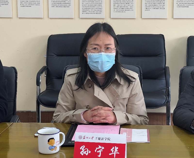 宫向阳书记对法学院取得的成绩和学院领导班子带领广大教师所付出的不懈努力给予肯定。他表示,作为东吴法学的继承者,法学院拥有光荣的传统和深厚的底蕴,近年来,学院在人才培养模式上也探索了许多特色做法,培养造就了一大批优秀人才。宫书记强调,在今后的工作中,法学院要继续加强全面从严治党及党风廉政建设,守住意识形态底线,同时学校纪委也希望可以依托法学院的专业学科背景,与法学院加强沟通交流,共同推动学校纪检工作纵向深入开展。