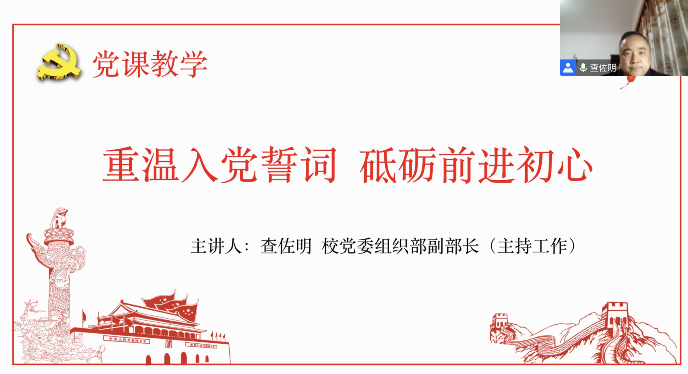 入党誓词是党员对党作出的庄严承诺,是每一名党员的责任与义务的体现。理解入党誓词,是每一个共产党员的必修课,也是读懂中国共产党的一把钥匙。重温入党誓词,回望初心,正是强化思想入党的重要方式。查部长进一步指出,入党誓词是中国共产党党员的宣誓书——用最为精炼质朴的语言诠释了党性,更明确了对党员的基本要求;入党誓词是党员对党组织的承诺书——坚守入党誓词是对党员永恒的要求;入党誓词是加强党性修养的座右铭——对入党誓词要始终践行,做到终身坚守并在群众中发挥先锋模范作用。