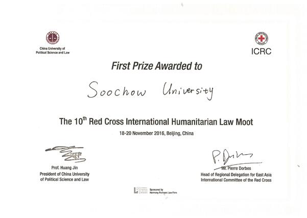 11月18日-20日,由红十字国际委员会和中国政法大学联合举办的第十届红十字国际人道法模拟法庭竞赛在中国政法大学昌平校区举行。我院代表队经过两场小组赛和一场四分之一决赛的激烈角逐,从全国32支队伍中脱颖而出,最终凭借优异的书状成绩和小组赛、淘汰赛的精彩现场表现蝉联本次竞赛一等奖。