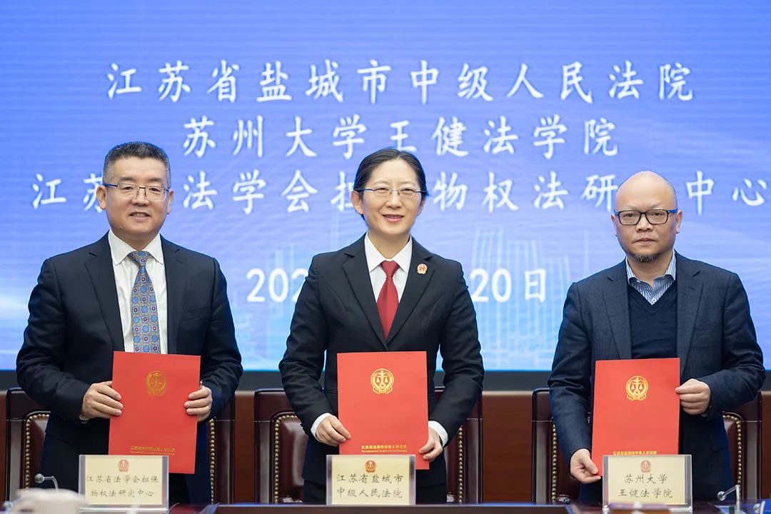 11月20日上午,由盐城中院、苏州大学王健法学院、省法学会担保物权法研究中心成立的“担保案例联合研究基地”共建协议签约仪式在盐城中院隆重举行。盐城中院党组书记、院长李江蓉,我院院长方新军,我院民商法教授、省法学会担保物权法研究中心主任董学立、研究员李运扬出席签约仪式。