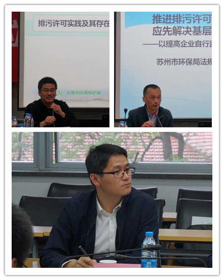 专题一共有三位发言人。无锡市环保局法规处王海明处长结合其环境监管工作经验,回答了排污许可推进过程中遇到的四个难题,即排污许可的适用对象、排污许可证在有效期内发生变更或撤销的补偿问题、排污许可证的信息平台记录与纸质书面证书的证明效力以及排污许可违法制裁是否适用违法性继承。苏州市环保局法规处李加祥以提高企业自行监测有效性为视角,提出排污许可管理立法应先解决基层执法难题。他认为应从完善污染源监测相关技术规范、加强对自行监测企业和第三方社会检测机构监管、畅通多元监管渠道、夯实基层环境执法能力等方面完善企业自行监测规定。观韬中茂(杭州)律师事务所陈国强律师的发言侧重于对排污许可证的解读。他认为排污许可证具有证明排污许可的取得、明确企业排放污染物的条件以及记录政府环境管理需要的附加条件等功用。