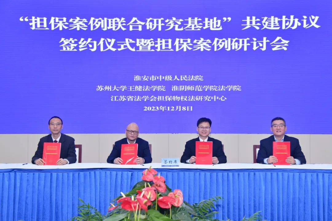 为深化院校之间的交流合作,推动担保法律制度理论与实践紧密结合,共同培养适应新时代司法需求的法治人才,12月8日上午,淮安中院与苏州大学王健法学院、淮阴师范学院法学院和江苏省法学会担保物权法研究中心联合设立的“担保案例联合研究基地”共建协议签约暨揭牌仪式在淮安中院举行。