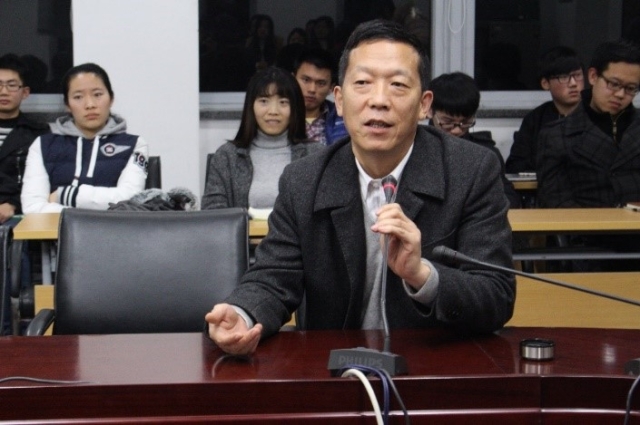 第二位是来自相城人民检察院的郭磊学长。他告诉我们,就业并非就要选择北上广,我们应该结合自身的情况,最好是去自己心仪的城市,否则容易后悔。他还说,“现实比例子更精彩”,嘱咐我们认真学习专业知识。
