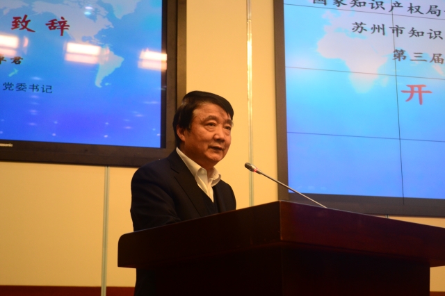 在苏州国家知识产权服务业集聚发展示范区揭牌、国家知识产权局专利局审查实践基地揭牌及苏州市知识产权服务超市平台上线启动仪式之后,苏州大学党委书记王卓君,苏州市委常委、副市长吴庆文,江苏省知识产权局局长支苏平,国家知识产权局副局长甘绍宁分别致辞。王书记代表苏州大学感谢高新区、苏州市长期以来对苏州大学发展的大力支持,苏州大学知识产权研究院是高校服务地方的新模式,王书记表示将全面推进苏州大学与苏州市政府的名城名校融合发展战略,加快促进高校创新资源与苏州经济社会转型升级需求的深度融合。