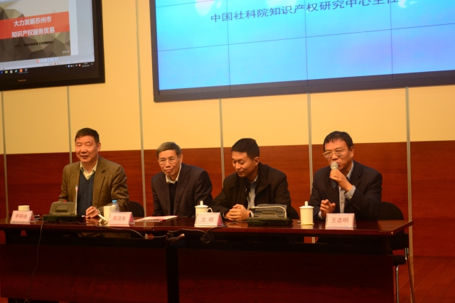 论坛开幕式暨揭牌典礼结束后即进入论坛主旨演讲环节。主旨演讲由中国社会科学院知识产权中心主任李明德教授主持,分别由中国法学会知识产权研究会名誉会长、原中南财经政法大学校长吴汉东教授,中兴通讯股份有限公司知识产权部副部长文明以及苏州市商务局副局长王志明主讲。吴汉东教授以“创新驱动发展与知识产权策略”为题,分析了当下我国的知识产权发展现状,强调了由知识产权大国向知识产权强国转型的必要性和实现途径,提出了在制度现代化的基础上实现创新驱动的理念。文明部长围绕“M-ICT”的核心理念,分析了在工业4.0时代下的商业范式,对企业创新发展当中遇到的问题进行阐述并指定了相应的知识产权战略。王志明副局长以“发展苏州市知识产权服务贸易”为题,介绍了当下的国际服务贸易现状,对我国的相关政策进行了解读,以及对苏州知识产权服务贸易的发展进行了规划并提出了宝贵建议。