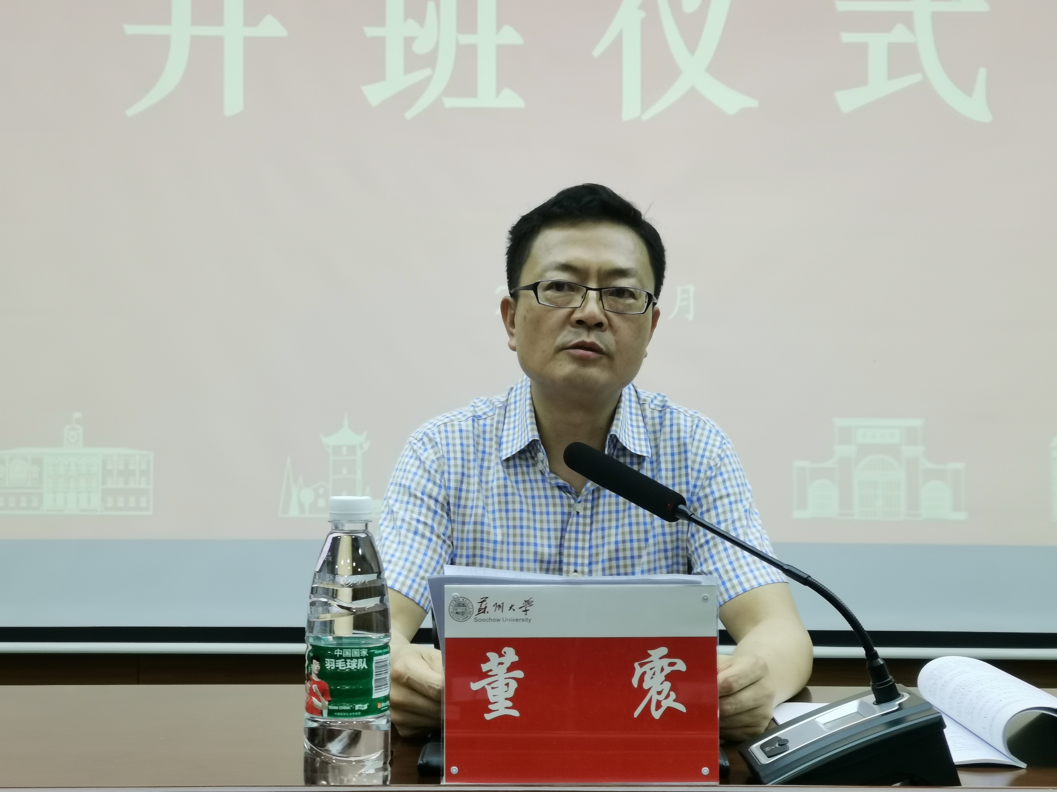 开班仪式上,沈晔院长对全体学员的到来表示诚挚欢迎,他向学员们介绍了苏州大学悠久的历史,以及在学科建设、人才培养、科学研究等方面取得的优秀成果。董震组长作了开班动员,向参训学员提出了具体要求,要求全体学员抓住培训的机会,认真学习,积极调研,提升自身的综合素能,并对承办此次培训的苏州大学表示感谢。
