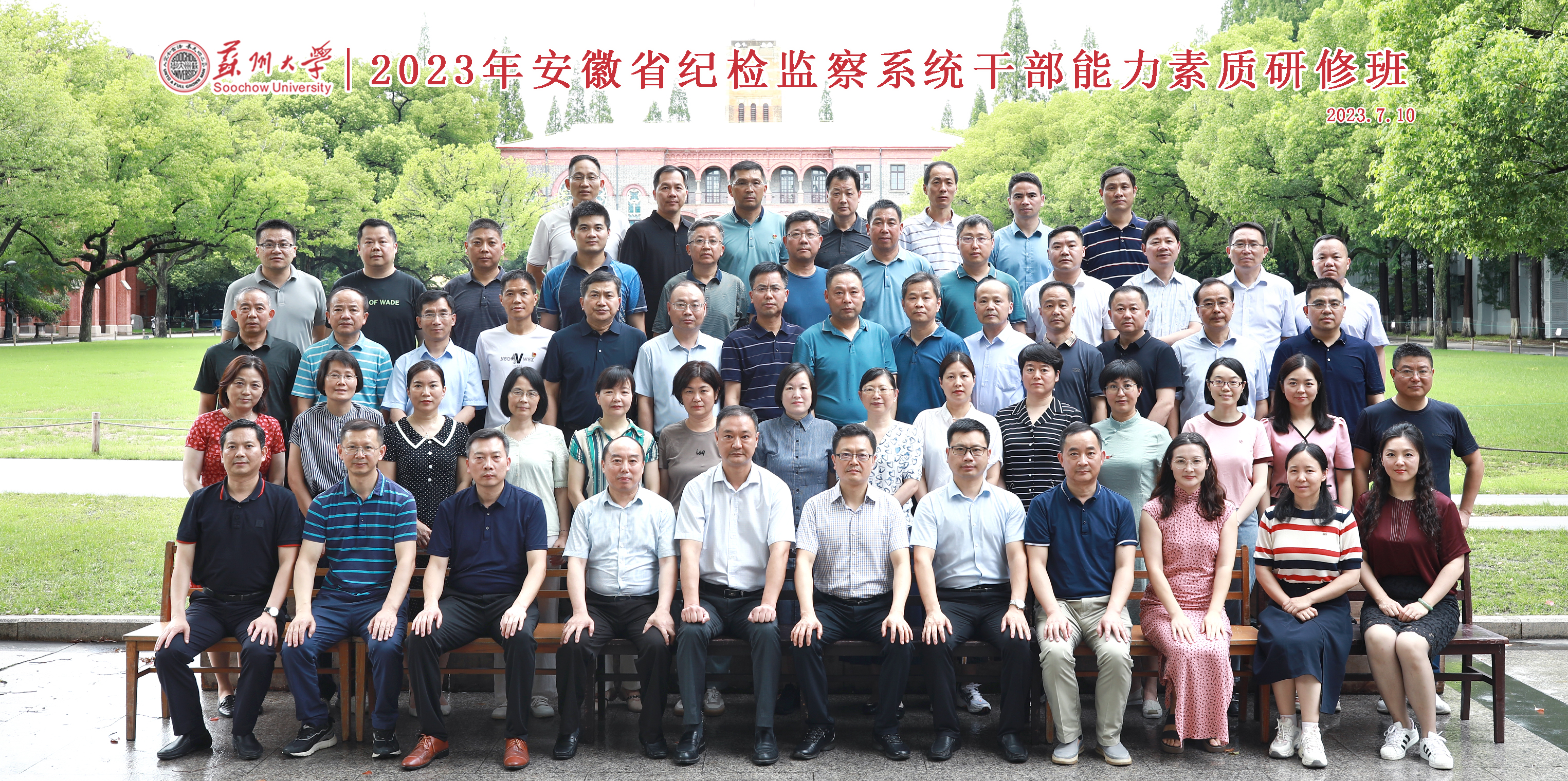 7月10日下午,2023年安徽省纪检监察系统干部能力素质研修班在我校顺利开班。来自安徽省54位纪委书记、纪委干部参加了本次培训。驻安徽省委政法委纪检监察组组长董震、苏州大学王健法学院副院长沈晔出席了开班仪式。