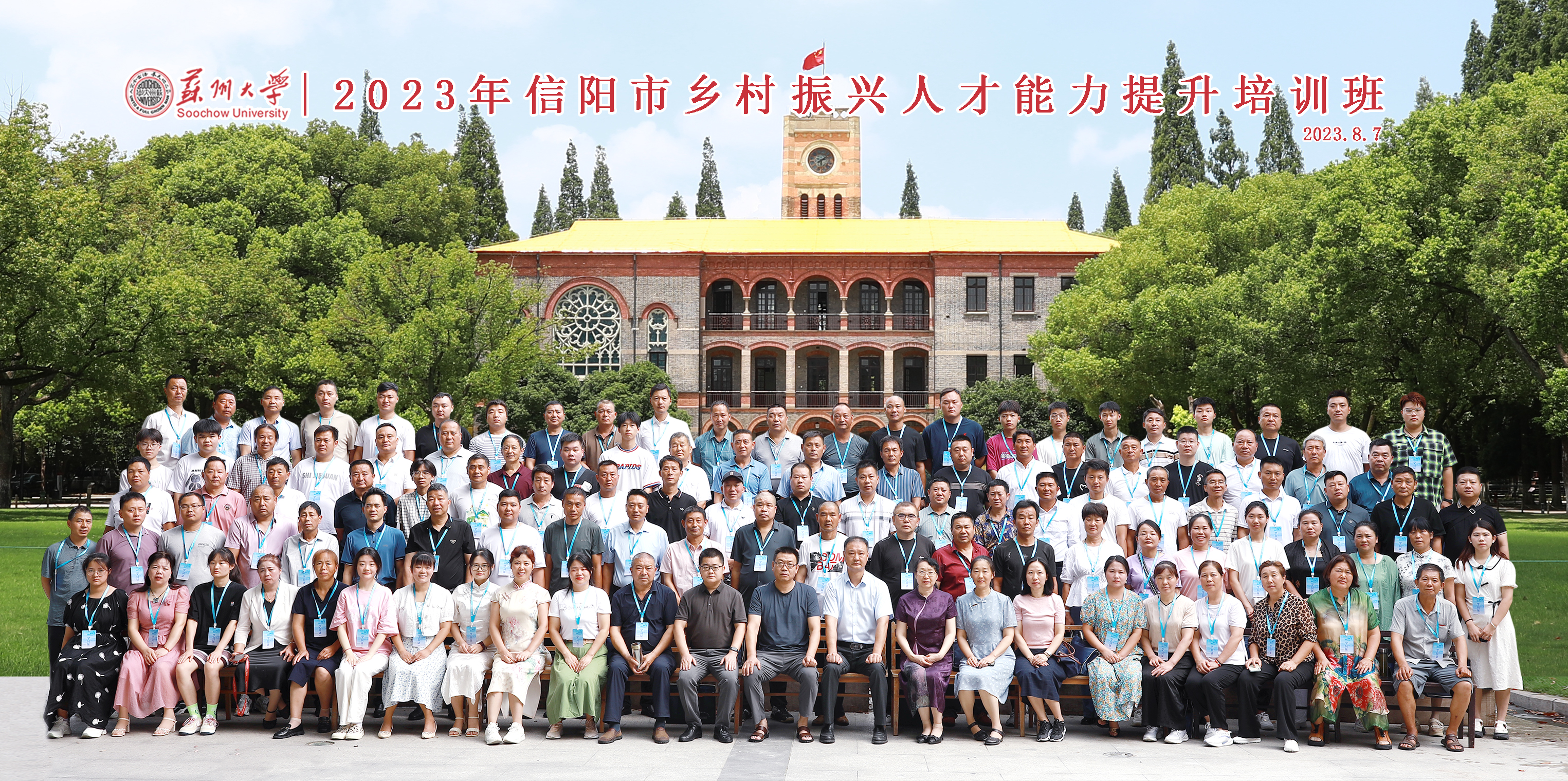 2023年8月7日至8月11日,苏州大学王健法学院顺利承接了“2023年信阳市乡村振兴人才能力提升培训班”。来自河南省信阳市124名从事农业生产的学员参加了本次培训。
