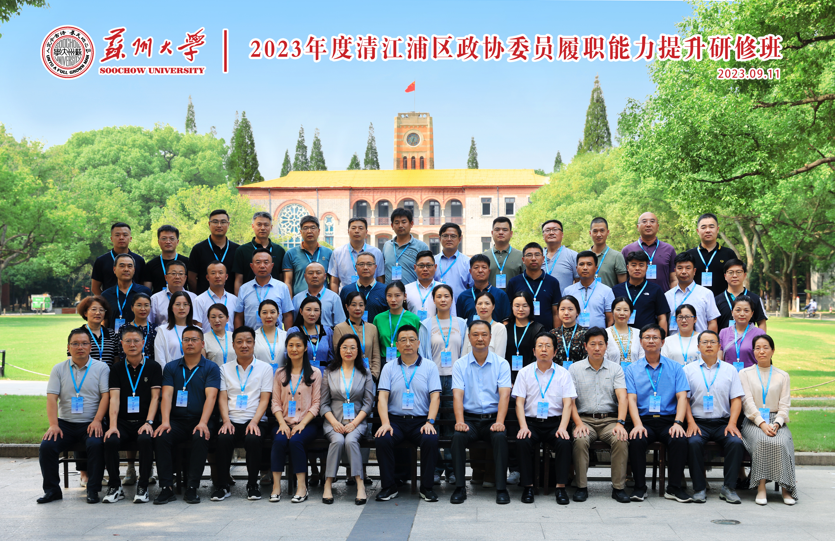 9月11日下午,2023年淮安市清江浦区政协委员履职能力提升研修班在我校顺利开班。来自淮安市清江浦区55位政协委员参加了本次培训。清江浦区政协副主席、党组成员、三级调研员朱卫东和清江浦区政协副主席、三级调研员杨春燕及苏州大学王健法学院副院长沈晔出席了开班仪式。