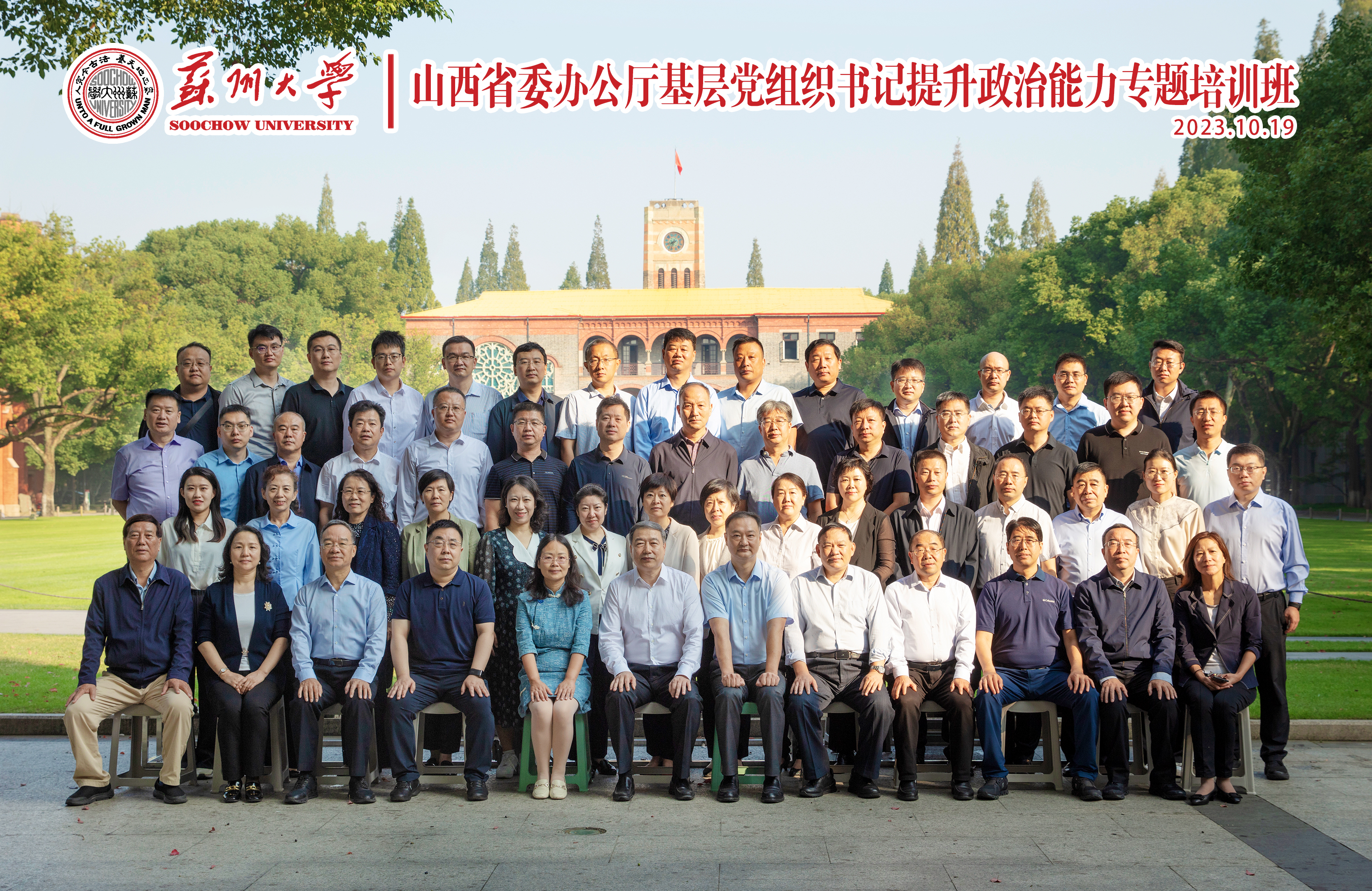 10月19日上午,山西省委办公厅基层党组织书记提升政治能力专题培训班在我校顺利开班。来自山西省委办公厅的51位党务干部参加本次培训并参加了开班仪式。参加开班仪式的领导有主持日常工作的省委副秘书长武晋同志、苏州王健法学院党委书记孙宁华同志。开班仪式由苏州大学王健法学院对外联络与发展办公室主任武晓莉同志主持。