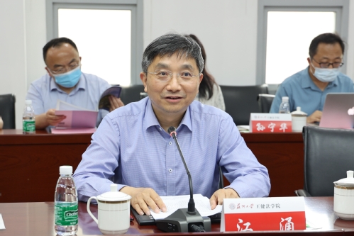 江涌代表学校向长期以来关心支持苏大发展的江苏省人大常委会、苏州市人大常委会各位领导和与会专家表示衷心感谢,并简要介绍了学校发展现状、近年来取得的发展成绩以及王健法学院发展情况。他指出,学校特别是王健法学院的很多教师都注重将法学理论研究与法治建设实践问题对接,积极参与国家和地方各层次立法,为江苏地方立法乃至国家立法作出了苏大人的贡献。江苏省地方立法研究基地(苏州大学)的建立,将为王健法学院不断深化社会主义法治理论研究、精准对接服务江苏地方立法实践、持续提升法治人才培养质量提供新的重要平台。他表示,学校将高度重视基地的发展建设,一是强化政治自觉,把准研究基地建设的政治方向;二是突出问题意识,强化使命担当,发挥特色优势,把法学理论研究与我国法治实践,特别是江苏地方立法高质量发展的实践需求对接好;三是充分利用研究基地平台资源,强化学科建设,深化共建内涵,合力推进基地高质量发展。
