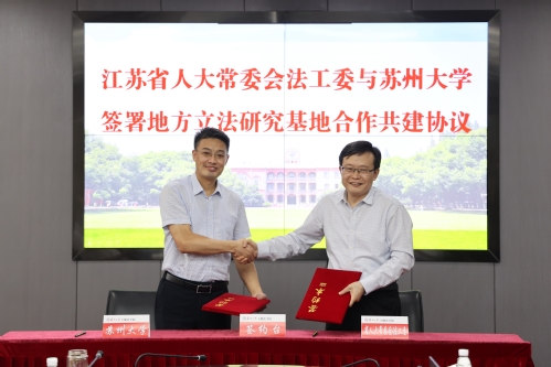 会上,赵建阳、邓敏分别代表江苏省人大常委会法工委、苏州大学签署地方立法研究基地合作共建协议。
