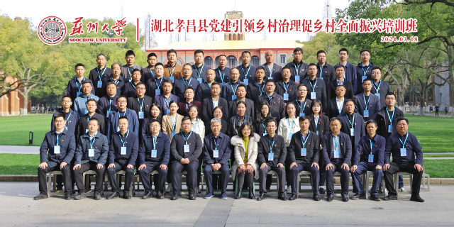 2024年3月18日至3月22日,苏州大学王健法学院顺利举办了“2024年湖北孝昌县党建引领乡村治理促乡村全面振兴培训班”。由湖北孝感市委组织部、孝昌县政协及下辖的各乡镇党委书记、镇长及各部门党政干部组成的59名学员参加了本次培训。