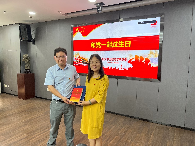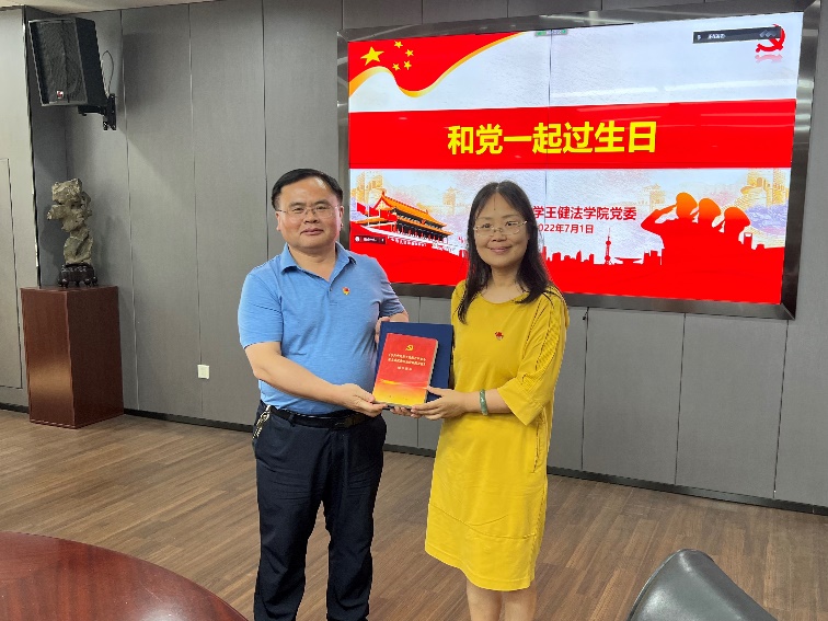 7月1日下午,在中国共产党成立101周年之际,王健法学院党委通过线上及线下相结合的方式,举办“和党一起过生日” 七一特别党日活动。法学院党委书记孙宁华,在党三十年的上官丕亮老师,在党二十年的蔡晓荣老师、李杨老师,在党十年的尹德贵老师、张焕然老师,全体支部书记、全体在校党员及积极分子参加活动。活动由学院专职组织员范茜主持。