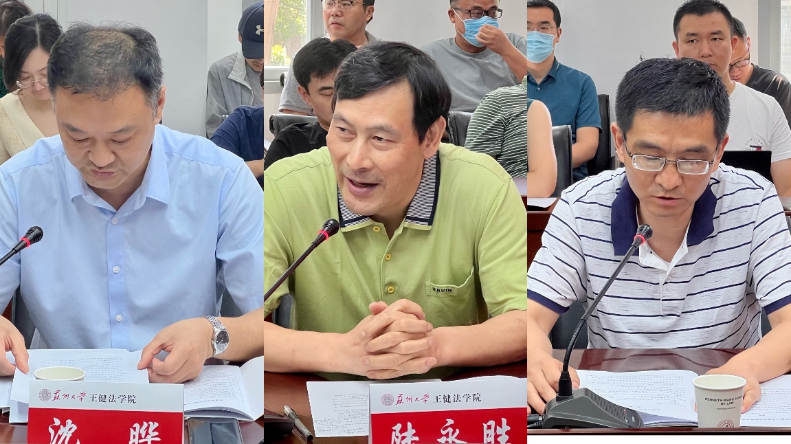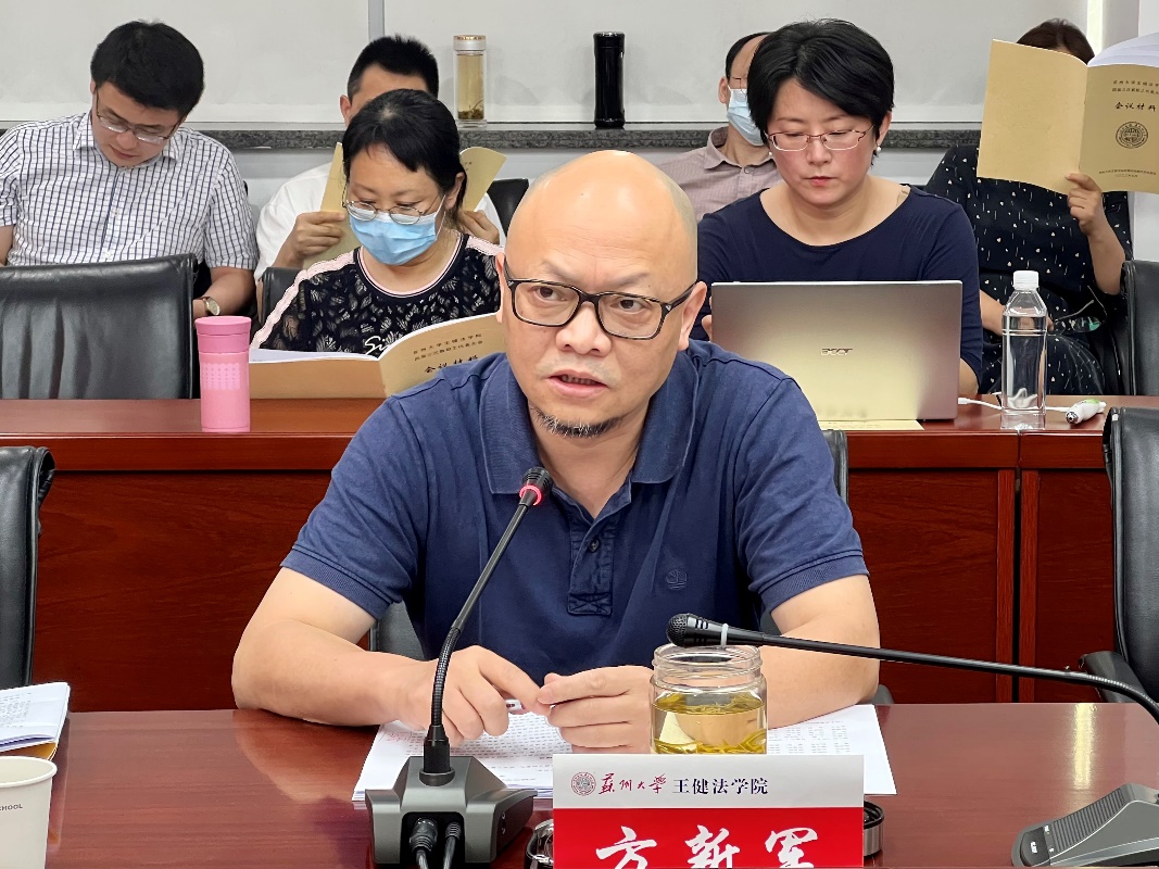 方新军院长做学院工作报告。他从“党的建设”、“学科建设”、“师资队伍建设”、“教学管理”、“科研工作”、“学生管理”、“校友工作及国际化办学”、“行政管理与财务创收”、“知识产权研究院工作”等九个方面对于学院一年来工作进行了总结和展望。他指出,虽然受疫情影响,但学院的各项工作仍然在稳步推进,并取得不错成绩,去年更是获评了苏州大学2021年度综合考核文科类第一等次第一名。