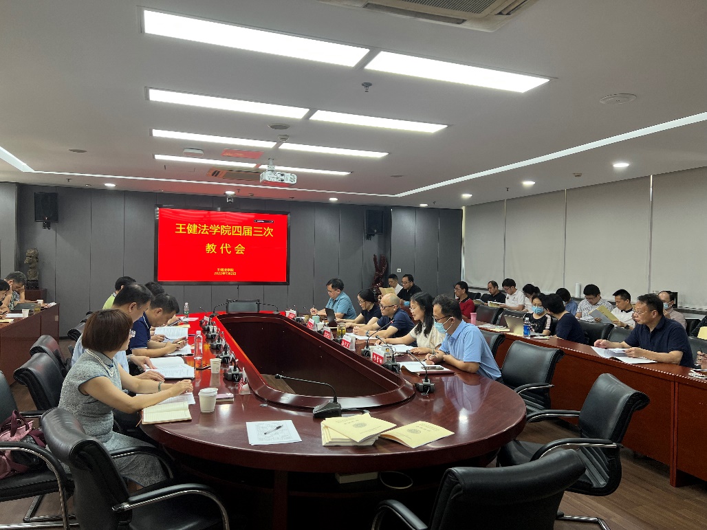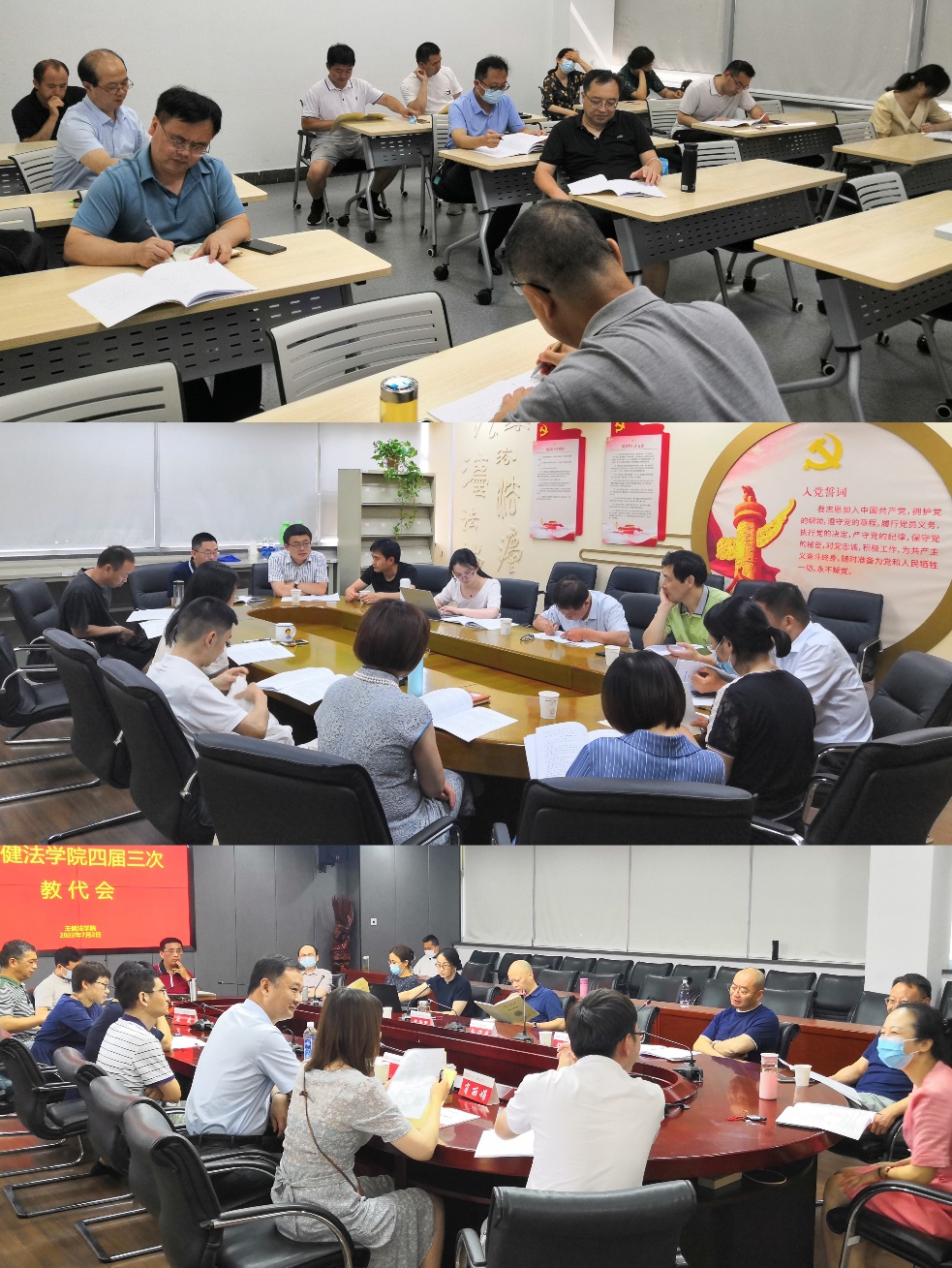 在学校工会、学院党委的关心和指导下,根据王健法学院四届教代会执委会决定,王健法学院第四届教职工代表大会第三次会议于7月2日下午在法学院大会议室顺利召开。大会采用全体教职工大会形式,线上线下同步进行,校工会副主席顾志勇莅临指导,院党委书记孙宁华主持。