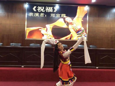 晚会期间充满欢声笑语,各种类节目异彩纷呈。独舞《祝福》表达了对祖国深深的祝福!祝福我们的祖国永远坚强永远蓬勃。体现了新一代青年的精神风貌,体现了对“五四”精神的传承。
