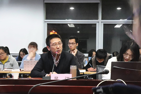 第二个问题是如何看待实质解释观。时教授首先介绍了何谓刑法意义上的实质解释观即以法条所保护的法益作为出发点,带有扩张意味的解释刑法条文的构成要件。紧接着,又介绍了形式解释观,即先看法条的字面含义,再通过立法者的原意进一步的理解适用。在这里,时教授用手机与灯光的关系形象生动的作了比喻,又针对这两种观点表达了自己的看法,即形式解释论虽然有可能会存在打击面过窄的问题,但在形式上确是严格的遵守了罪刑法定的原则;而对于实质的解释论,时教授则认为虽然在当下刑法学界有不少学者支持实质的解释论,但其也存在着易过度扩大解释的问题。