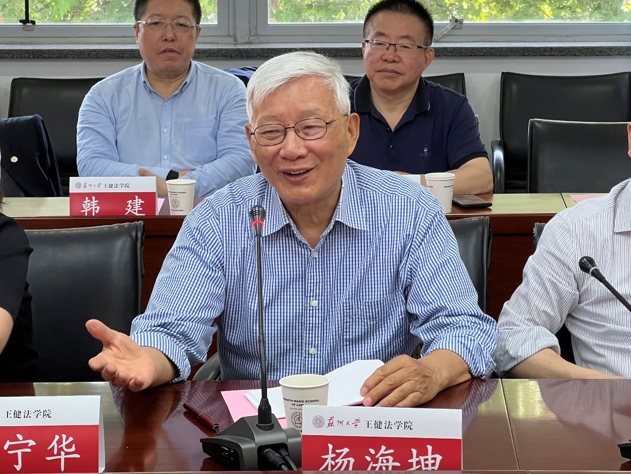 老院长杨海坤教授分享了与潘抱存教授相处的点点滴滴,高度赞美了潘教授认真严谨的治学态度和身正为范的良师风范。杨海坤教授表示,潘教授的国际公法专著一问世便受到了欧洲国际法学界的高度重视,德国汉学家和国际法学家胡意志教授奋笔发表书评,作出高度评价。如今看来,潘教授的诸多国际法思想即便是在今天这样一个纷繁复杂的国际地缘政治格局下也是有指导意义的,潘教授的学术思想值得进一步挖掘和总结。此次座谈会不只是纪念潘抱存教授,更是纪念为法学院作贡献的所有前辈们。