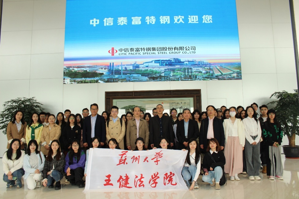 中信泰富特钢集团有限公司地处江苏省江阴市国家高新技术产业开发区,现已成为中国特钢行业龙头企业,被国家《钢铁工业“十二五”规划》列为四大特钢产业基地之一和中国特钢技术引领企业、国家知识产权示范企业。学院师生参观了企业的文化展厅和产品展厅,了解了公司的发展历程、企业规模、产品生态等基本情况。孙书记向中信泰富特钢负责人介绍了我院办学情况及毕业生就业情况,四位教授作为导师分别介绍了所带研究生的学术科研情况,期待双方继续保持双向互动,加强供需精准对接,重点推介了学院知识产权、环境法学等相关专业毕业生到中信泰富特钢就业。参加同学反响热烈,纷纷表示出对高新实业企业的极大就业热情。