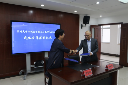 为充分发挥法院司法实践和高校理论的资源优势,推动理论和实践的进一步结合,教学和审判的进一步融合,学者与法官的进一步交流,4月19日,我院与如皋法院举行战略合作签约仪式。如皋法院党组书记、院长章智敏,院党组副书记、副院长陈祥,长江镇党委书记顾留忠,院党组成员朱玉林、李斯武及长江流域环境资源第二法庭全体法官,我院院长方新军、教授朱谦、王克稳、副教授冯嘉以及研究生秘书胡育新,参加了签约仪式。