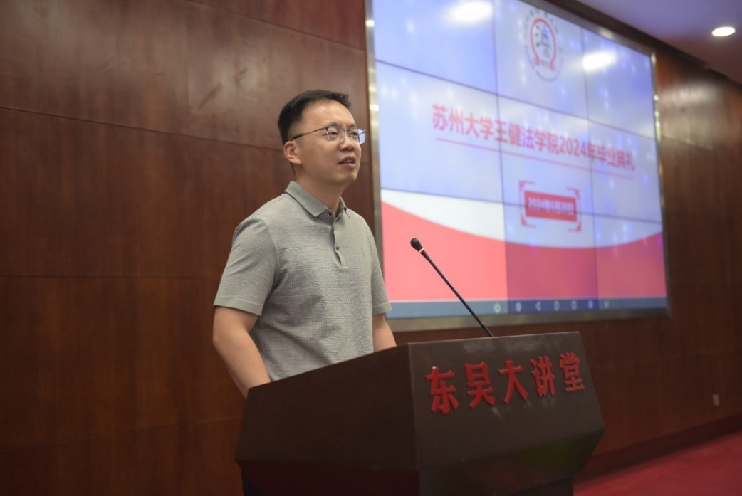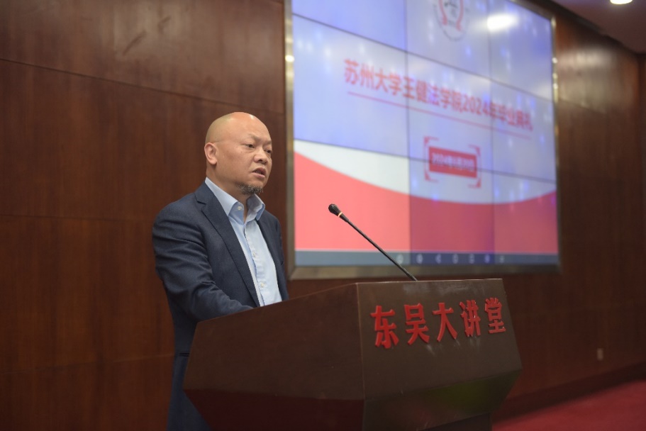 6月20日上午,苏州大学王健法学院2024年毕业典礼在东吴大讲堂隆重举行。学院领导方新军、朱春霞、程雪阳、沈晔、上官丕亮、庞凌、肖丽娟,专业课教师代表、辅导员、2024届毕业生共同参加典礼。本次毕业典礼由王健法学院党委副书记兼副院长朱春霞主持。