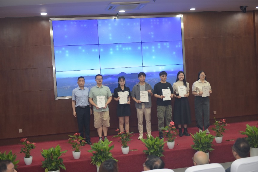 副院长上官丕亮教授与副院长庞凌教授为获奖毕业生颁发荣誉证书,祝愿他们带着这份荣誉和使命,在走出校门后继续奋楫扬帆、笃行实干,在奋斗中不负时代、不负韶华。