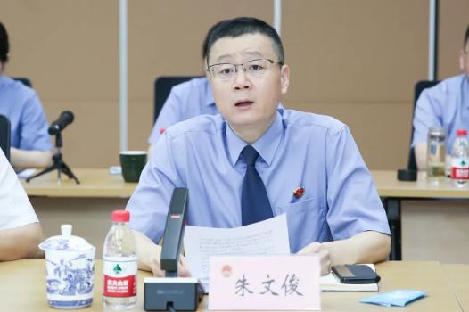新北区检察院朱文俊检察长致辞,他介绍了新北区检察院在知识产权保护方面的履职情况,并希望双方能推动检院合作向更深层次、更广领域推进,促进知识产权法学研究、人才培养与司法实践深度融合,更好地服务新质生产力发展。