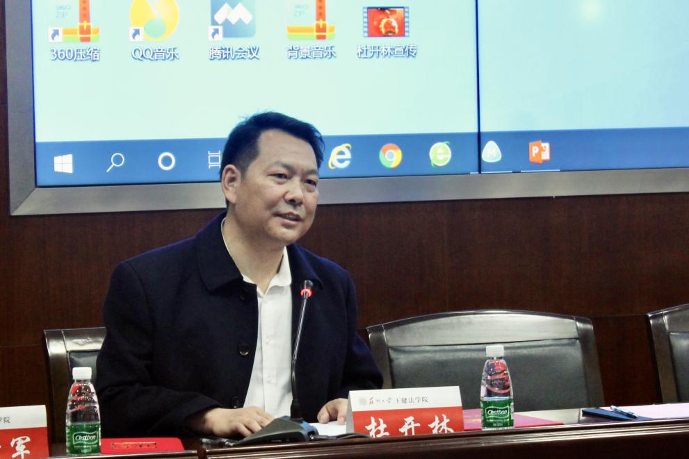 导师讲座环节开始。“我做学生的时候有一个梦想,希望能在高校体验一下当老师的感觉。”杜开林法官表示很荣幸能够返回母校并为同学们作宣讲。在谈到如何学习法学时,杜法官以自身实际出发,认为首先应当顺应党和国家发展的大方向,无论是写学术文章,还是从事执法、司法等工作,都要有利于共同富裕,有利于物质文明和精神文明的极大丰富,只要坚定不移地朝着这个方向走,一定能获得时代和社会的检验。此外,杜法官还指出在刻苦钻研的同时也应当野蛮体魄,提高抗压能力,注重多岗位锻炼。