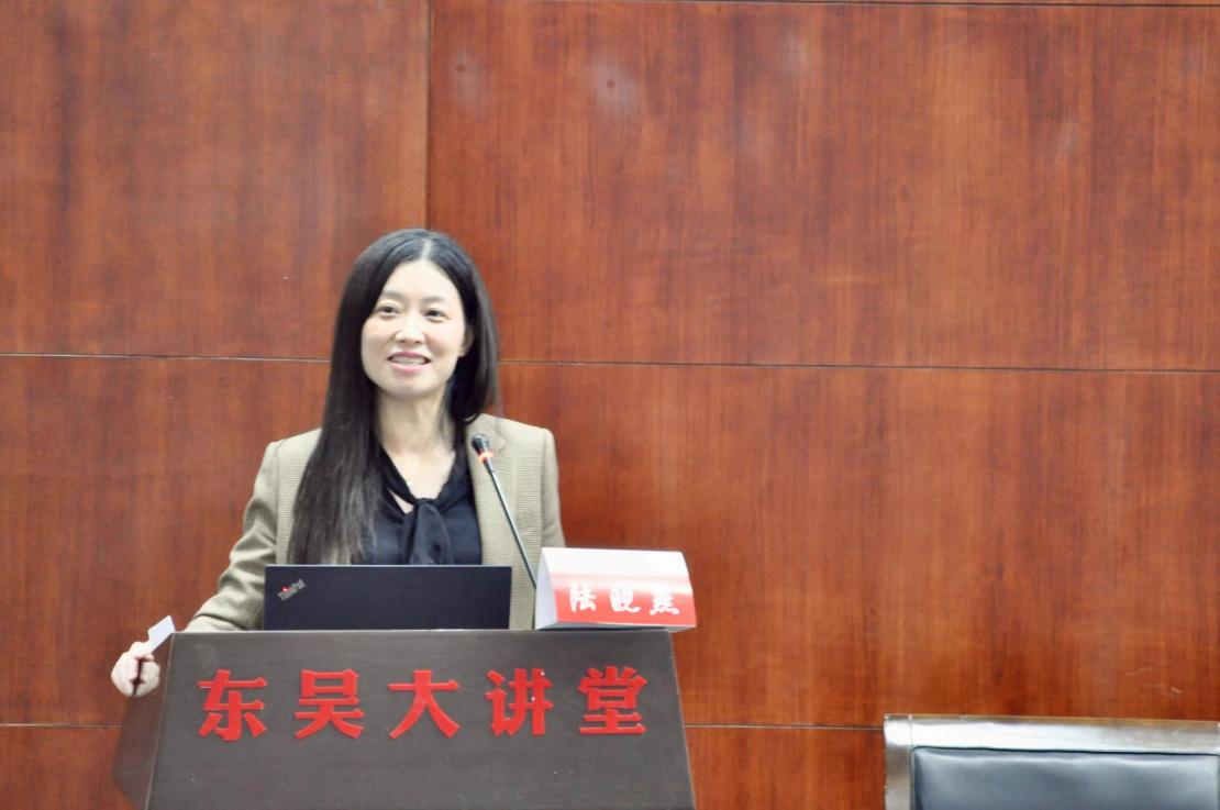 王健法学院副书记朱春霞介绍了德法兼修校友讲坛首次宣讲嘉宾:南通市中级人民法院执行副局长、审判委员会委员杜开林和江阴市人民法院党组书记、院长陆晓燕。