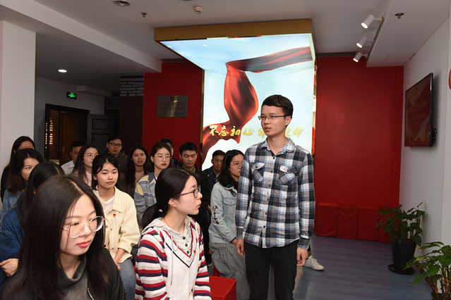 活动伊始,全体党员在讲解员的带领下,进入博物馆参观“初心不改,浩气长存”苏州大学英烈展。展览展示了上世纪20年代至90年代目前已知的苏州大学历史上23位中共党员英雄烈士的生平事迹。讲解员结合习近平总书记在纪念五四运动100周年大会上的讲话,着重向我们讲述了贺威圣、徐玮、胡陈杰、瞿犊、茅丽瑛、王晓军等青年英烈的感人事迹。