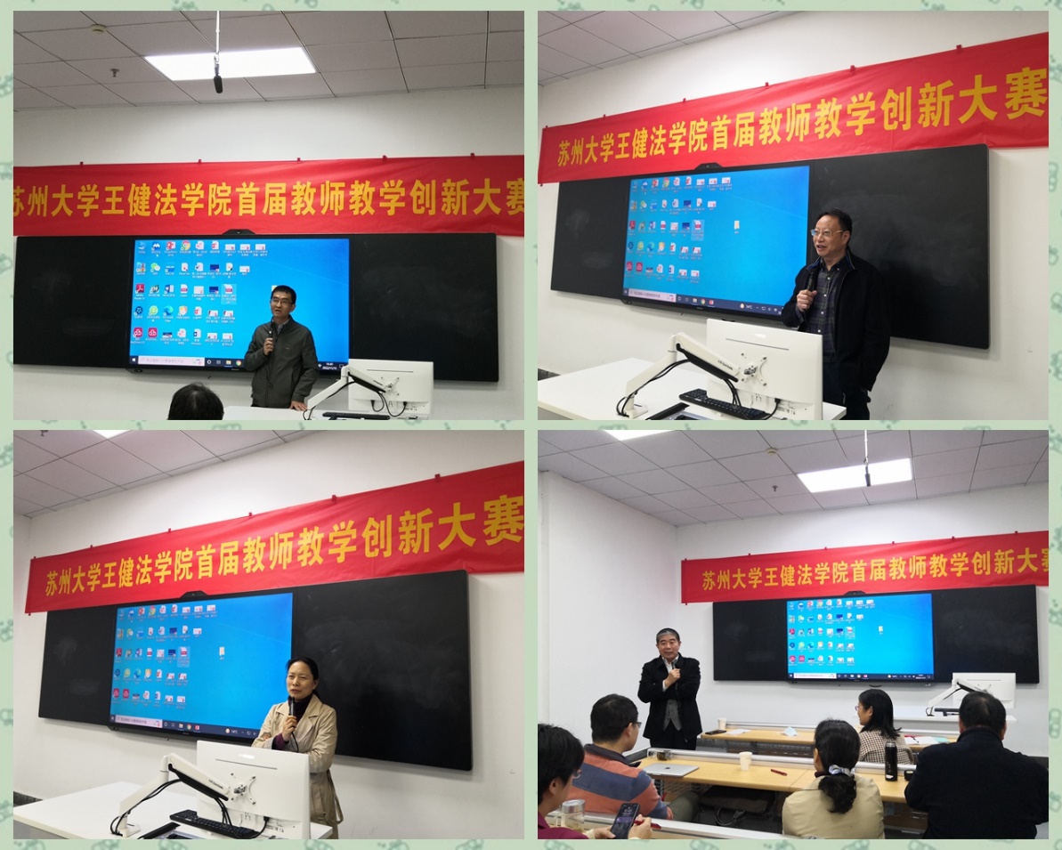 为进一步促进我院教师开展教学改革创新,提升教师教书育人能力和教学水平,并选拔优秀选手参加学校的教学创新大赛,我院专门制定了《苏州大学王健法学院教师教学创新大赛实施条例》,决定每年举行教师教学创新大赛。2022年11月15日下午,王健法学院首届教师教学创新大赛于法学院A109教室成功举行。本次创新大赛邀请学院党委书记孙宁华教授,教学副院长上官丕亮教授,学院资深老师李晓明教授、沈同仙教授、张永泉教授以及学院各教研室主任担任评委,各个教研室选送十位青年教师参加比赛,学院45周以下的中青年教师到场旁听观摩。