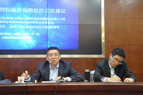 2019年5月9日晚7点,中国社会科学院学部委员,全国人大宪法委员和法律委员会委员,中国民法学研究会常务副会长孙宪忠教授莅临我院,为我院师生作了以‘关于民法典物权编担保物权的立法建议’为主题的学术讲座。我院方新军院长担任本次讲座的主持人。董学立教授和张鹏教授参与会谈。