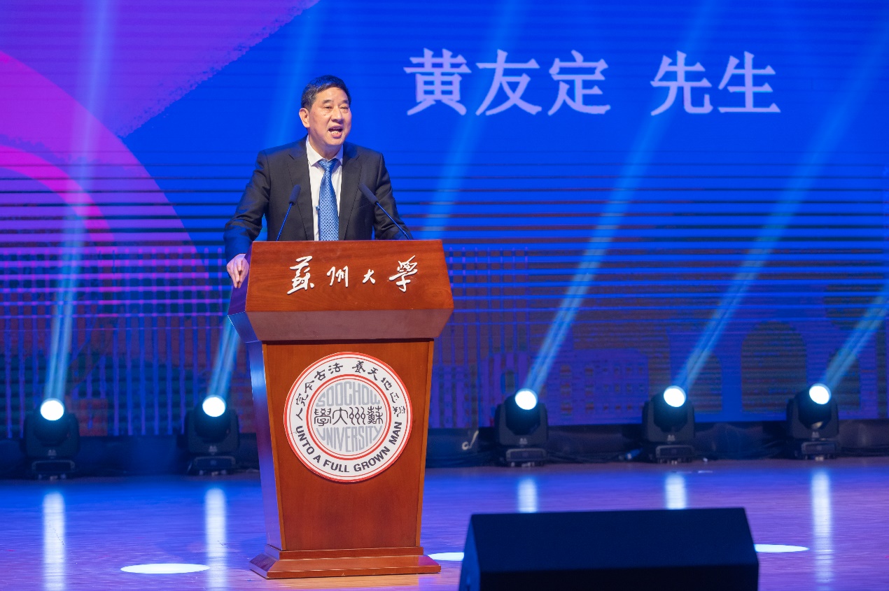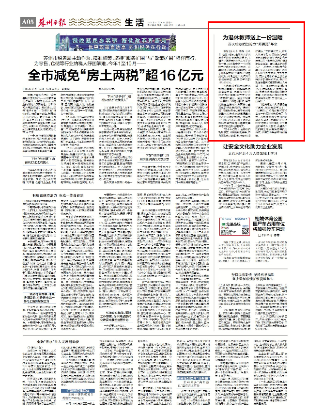“四十年过去了,老师们的哲理名言,风趣幽默的讲课,还有那些动人的故事,我仍然记忆清晰。”在庆典仪式上,苏州大学法学院82级校友代表黄友定深情地回顾了自己的大学生活以及与敬爱老师们的点点滴滴。作为设立基金的发起人之一,他表示,在母校苏大的学习生活终身难忘,不仅在这里学到了知识,交到了挚友,更是从老师们的身上感受到特别多的温暖和关爱,老师们的循循善诱和谆谆教诲让人受益一生。“此次我们82级校友决定自发捐款设立‘师恩源’基金,是想表达对老师和母校的感谢,为全体退休教师提供物质帮助和精神关爱,为他们送上一份‘秋日暖阳’”。