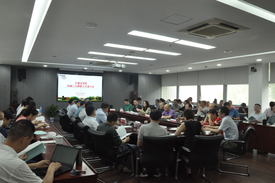 在学校工会和学院党委的关心和指导下,根据王健法学院四届教代会执委会于7月2日会议的决定,王健法学院第四届教职工代表大会第二次会议于7月10日下午在法学院大会议室顺利召开。大会采用全体教职工大会形式召开,校工会副主席顾志勇莅临指导,院党委书记吴江主持。