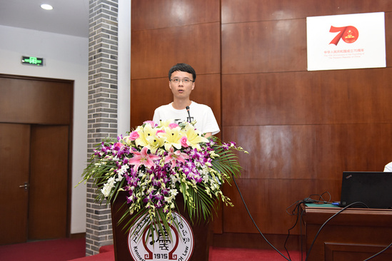 随后,2019届本科毕业生代表章金上台发言。他回忆了四年的本科生活,并表示以法律人的精神迎接未来的各种挑战,为我国的法治进步尽其所能。